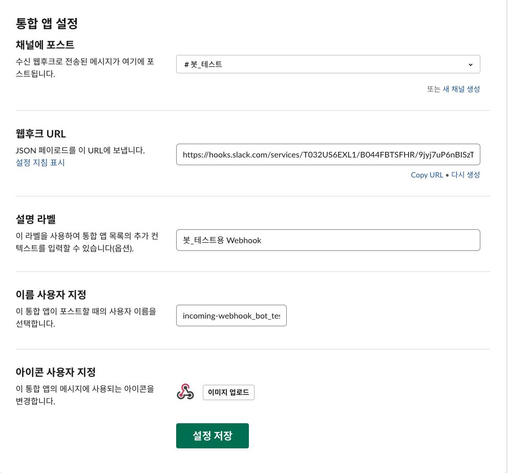 알림을 받기 위한 사전 준비로 Webhook URL을 생성해야 하기 때문에
