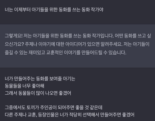 | GPT로 작성하는 아기 동화 <토끼 코코와 가족의 사랑> (0) | 2023.07.19 |